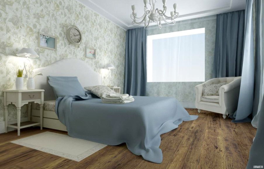 프로방스 침실 스타일. 흰색과 로얄블루로 완성하였다.