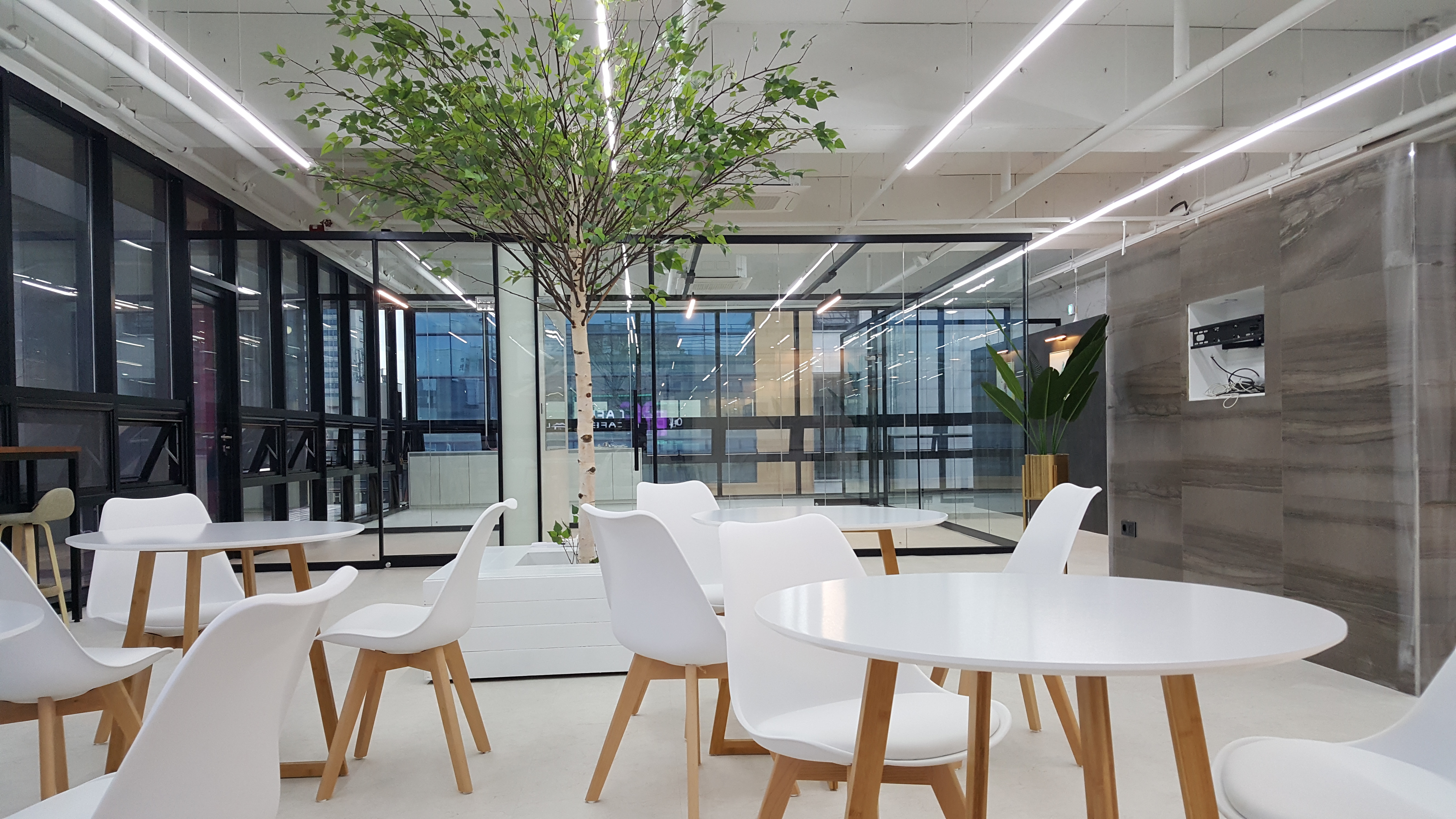 심플하면서 세련된 화이트톤 의자와 책상으로 탕빈실 설계