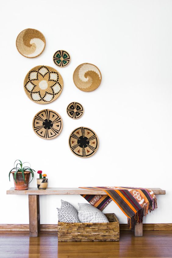 벽을 다 채울 필요는 없다. 밋밋한 느낌이 있는 벽면의 일부만으로도 바구니가 주는 자연의 느낌으로 채워진다.