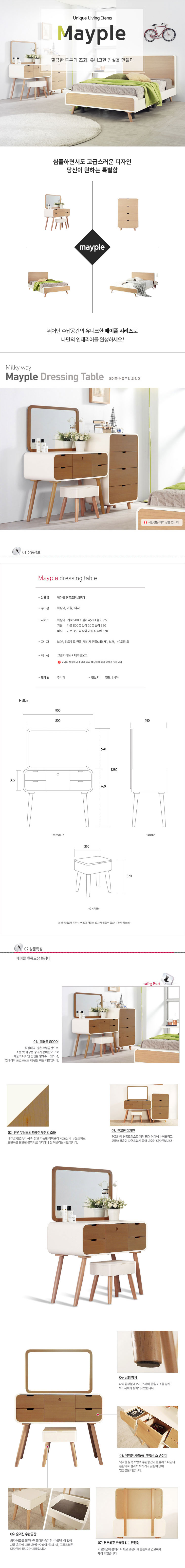 자체배송밀키웨이 메이플 원목도장 화장대세트(화장대+거울+의자 일괄주문)