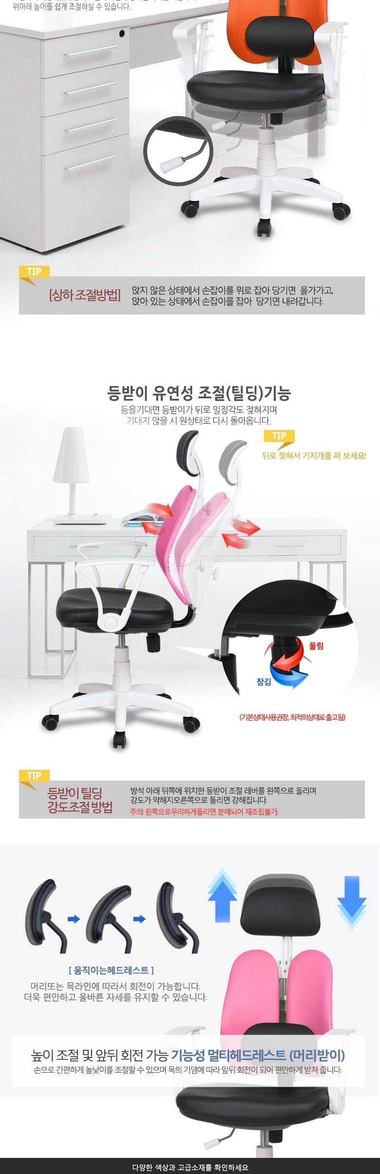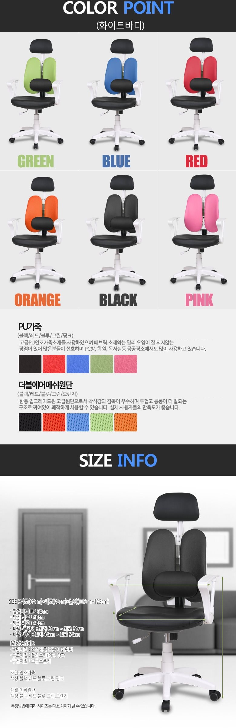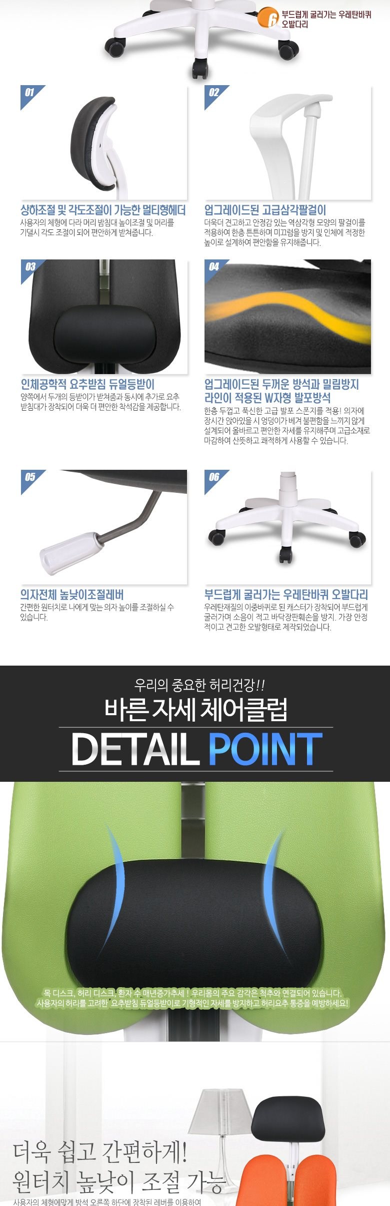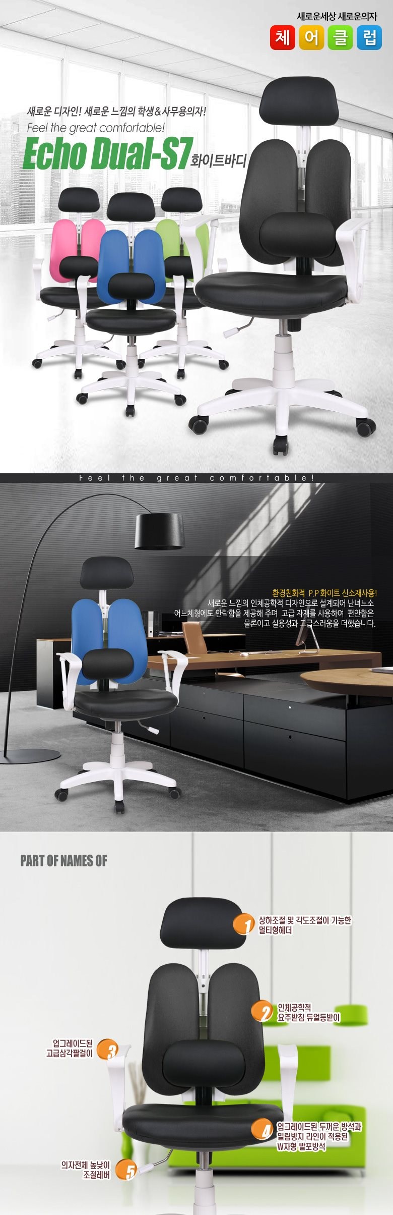 체어클럽 에코듀얼S7 요추헤더형 화이트바디 의자